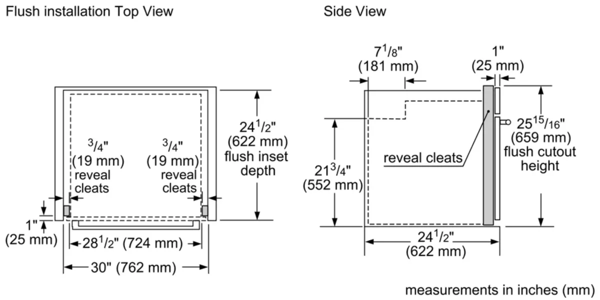 Kích thước khoét tủ yêu cầu ≈ 62,2 cm × 72,4 cm × 59,7 cm