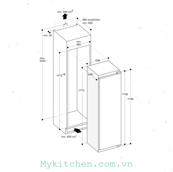 • Kết hợp với tủ lạnh RC 282 (Side by side)